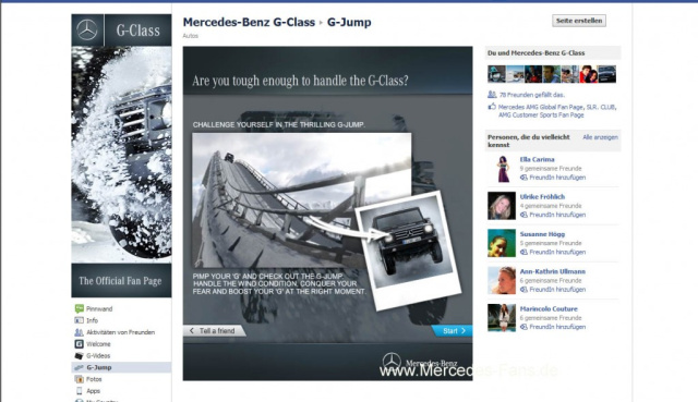 Erinnern Sie sich noch an das legendäre Audi quattro Video, in dem die vier Ringe eine Skisprung-Schanze emporklettern? Natürlich war das ein bisschen getrickst! Auch die Mercedes-G-Klasse zieht es jetzt auf die Schanze - und zwar anders herum, aber auch nicht in Wirklichkeit. Beim "G-Jump" - einem Online-Spiel auf der englischsprachigen offiziellen Mercedes-G-Fanpage auf Facebook kommt es darauf an, den weitesten Sprung mit einem Mercedes G hinzulegen. Wer ist bereit für dieses Abenteuer?