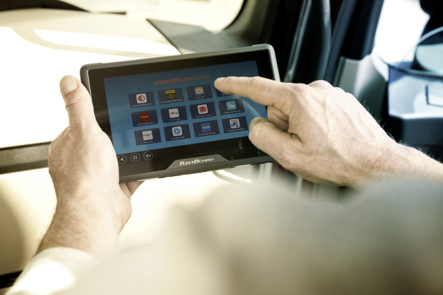 Der Download der Apps ist denkbar einfach: Der Unternehmer sucht sich bequem von seinem Arbeitsplatz eine oder mehrere Apps im FleetBoard Store aus und installiert sie over the air auf das herausnehmbare Fahrer-Tablet DispoPilot.guide – je nach Wunsch in einen einzelnen Lkw, mehrere oder sogar in die ganze Flotte. Der Lkw-Fahrer kann die einzelnen Apps über seinen DispoPilot.guide im Fahrzeug bedienen. Das Fahrer-Tablet könnte künftig das einzige Gerät im Fahrzeug sein, denn hier werden alle relevanten Informationen über die Apps rund um Fahrer, Fahrzeug und Auftrag gebündelt dargestellt.