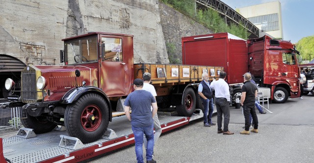 Zwei Fahrzeuge – ein echter Hingucker. Der N 56 mit Niederrahmen-Chassis und stahlbeplanktem Holzfahrerhaus wird auf einem Tiefbett-Auflieger mit einer Zugmaschine des Typs Mercedes-Benz Actros L gezeigt. Der Oldtimer ist Mitglied einer Typenreihe, die von 1928 bis 1933 gebaut wurde. In Hattingen wurde der restaurierte Rechtslenker in der Variante mit 7.400 Millimeter langer Holzpritsche gezeigt, die noch mit den ursprünglichen Beschlägen ausgestattet ist.