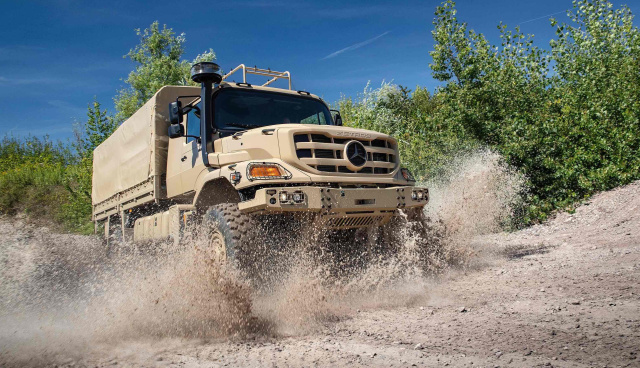 Der Mercedes-Benz Zetros wurde speziell für militärische Einsätze in Regionen mit begrenzter Infrastruktur entwickelt. Als Haubenfahrzeug ist die Fahrerkabine hinter der Vorderachse positioniert, was zahlreiche Vorteile bietet: eine reduzierte Gesamthöhe, deutlich geringere Schwingungs- und Stoßbelastungen für Personal und Ladung, erhöhte Fahrsicherheit sowie höhere Geschwindigkeiten im unbefestigten Gelände. Ein weiterer Vorteil: Für Wartungsarbeiten im Motorraum muss das Fahrerhaus nicht gekippt werden, sodass Teile der Besatzung im Fahrzeug verbleiben können, um Kommunikationssysteme und andere Fahrzeugfunktionen weiterhin zu nutzen.