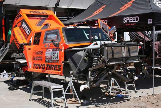 Im Gesamtklassement zeigt sich, dass Holowczyk dem mehrmaligen Dakarsieger Peterhansel auch im Wüstensand die Stirn bieten kann. Er verliert auf der gestrigen Etappe sieben Minuten und das obwohl er sich zweimal einen Platten fährt. Das Duell um die Spitze bleibt also mehr als spannend, zumal sich in diesem Jahr erstmalig auch Robby Gordon im bulligen Hummer als echter Siegkandidat präsentiert. Er fährt nur 13 Minuten hinter Peterhansel , obwohl er derjenige aus der Spitzengruppe mit den meisten technischen Problemchen ist. Zum Restday ist auch endlich Robbys zweiter Truck angekommen, der im Zoll hängen geblieben war. Das Team ist nun also komplett und schwerst motiviert diesmal alles richtig zu machen.