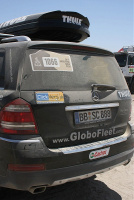 Das Bivak empfängt uns heute ähnlich staubig wie gestern. Immer am späten Nachmittag kommt hier in den Gegend ein unangenehmer Wind auf. Unangenehm, weil er den feinen Sand aufwirbelt und es permanent zwischen den Zähnen knirscht. Bei Aussentemperaturen von immer noch 34 Grad nicht unbedingt eine Freude. Es ist sogar so sandig, dass sich einige LKW festfahren. Den Peruanern ist`s egal und sie präsentieren sich in einem eigens aufgebauten Zelt trotzdem in Feierlaune.