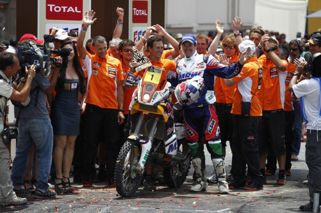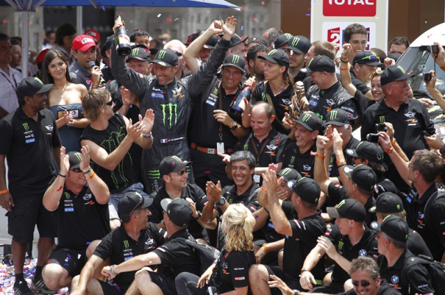 Es ist vollbracht. Sven Quandts Truppe holt mit Peterhansel und MINI endlich den lang ersehnten Dakar Sieg. Es sei ihm gegönnt. Die grösste und professionellste Truppe der Dakar holt damit für Stephane Peterhansel den 11. Pokal. Sicher hatte die MINI Mannschaft nicht mit einer so starken Gegenwehr in Form der neuen Toyota Pickups gerechnet und auch die Leistung von Robby Gordons Hummer erstaunte und verärgerte die Mannen um Quandt für eine lange Weile während der Rallye. Aber am Ende ist alles gut und Peterhansel, das Dakar Phänomen, schlägt mit einem schier unkaputtbaren MINI wieder zu. Nachdem Matthias Kahle im Buggy recht vorzeitig die Heimreise antreten musste, waren es auf dieser Dakar die Beifahrer, die aus deutscher Sicht die Lorbeeren gesammelt haben. Dirk von Zitzewitz und Andy Schulz navigieren ihre Fahrer auf die Gesamtplätze drei und vier.