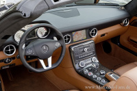 Der Mercedes-Benz SLS AMG wird noch attraktiver und individueller. Die neue Hightech-Wunschausstattung AMG RIDE CONTROL Sportfahrwerk mit adaptiver Verstelldämpfung vereint ausgeprägte Performance mit optimalem Langstreckenkomfort. Der Totwinkel-Assistent erhöht die aktive Sicherheit an Bord des Flügeltürers. Weitere Ausstattungsdetails wie mattschwarz lackierte AMG Schmiederäder im 10-Speichen-Design, rot lackierte Bremssättel oder AMG Zierelemente in Schwarz hochglänzend erhöhen die Exklusivität.