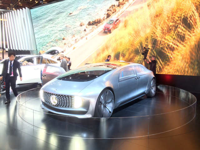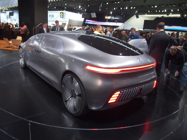 Autonomes Fahren war ein großes Thema auf der Consumer Electronics Show (CES) 2015 in Las Vegas. Experten sind sich einig: Die Zeit rückt näher, in der keine Menschen am Steuer mehr notwendig sind, damit ein Auto von A nach B fährt. Erste Modelle drehen ihre Runden bereits auf Teststrecken. Ganz vorne dabei in der Entwicklung autonom fahrender Autos ist Mercedes, bestes Beispiel ist dabei der Mercedes-Benz C 350 e. Auf der CES stellte Daimler der Öffentlichkeit zum ersten Mal das Konzeptcar F 015 Luxury in Motion vor, ein Fahrzeug, das vor allem innen an Zukunftsvisionen in Science-Fiction-Filmen erinnert. Eine auf der CES vorgestellte Studie von Mercedes zeigt zudem den Innenraum eines Fahrzeugs als eine Art Lounge, in der sich die Passagiere gegenübersitzen, miteinander sprechen oder ein Unterhaltungsprogramm genießen.