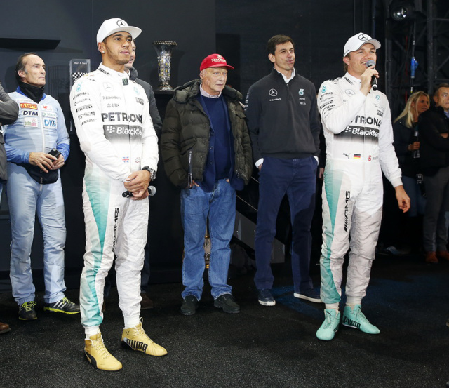Niki Lauda begann seine Arbeit bei Mercedes Ende 2012. Seit 2013 nimmt er die Position des Aufsichtsratsvorsitzenden von Mercedes-Benz Grand Prix Ltd ein. Zudem hält er 10% der Anteile am Team. Toto Wolff stieß im Februar 2013 von Williams zu Mercedes. Er hält 30% der Anteile an Mercedes-Benz Grand Prix Ltd. Als Executive Director arbeitet er seitdem als geschäftsführender Gesellschafter für das Team. Toto ist für das Alltagsgeschäft ebenso verantwortlich wie für seine weiteren Aufgaben als Mercedes-Benz Motorsportchef. Die Besitzverhältnisse bleiben unverändert, wobei die Daimler AG mit 60% den Mehrheitsanteil am Team hält.