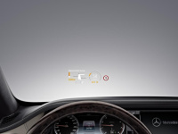 Erstmals in einem Mercedes-Benz findet in der neuen C-Klasse ist ein Head-up-Display Verwendung. Auch in der neuen S-Klasse wird die Anzeige kommen. Wie in einem Jet blendet es wichtige Informationen direkt ins Blickfeld des Fahrers in die Frontscheibe ein und sorgt dadurch für geringere Ablenkung vom Fahrbahngeschehen. Das System informiert über Geschwindigkeit, Tempolimits, Navigationsanweisungen und Hinweise von DISTRONIC.