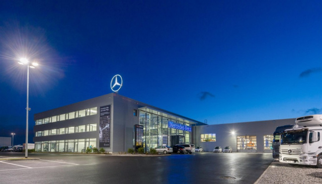 Nach nur zehn Monaten Bauzeit werden im neuen Nutzfahrzeugzentrum in Frankfurt alle Service- und Vertriebsleistungen für Lkw, Busse, Transporter und Sonderfahrzeuge gebündelt. Der neue Standort in Frankfurt ist direkt an Autobahnen gelegen, beschäftigt rund 150 Mitarbeiter und ist der erste Betrieb aus einem Gesamtinvest von 85 Mio. Euro für den Großraum Frankfurt. Das Dienstleistungsportfolio im neuen Nutzfahrzeugzentrum Frankfurt wurde deutlich erweitert mit dem neuen Transporter-Gebrauchtwagen-Center, in dem bis zu 200 Fahrzeuge zur Auswahl stehen, sowie einem Mercedes-Benz CharterWay Mietstützpunkt. Auch die Servicemarke TruckWorks ist Teil des neuen Standorts.