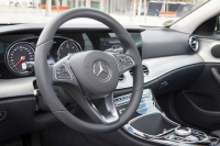Neue und weiterentwickelte Fahrassistenz- und Sicherheitssysteme in der neuen E-Klasse sorgen für maximale Sicherheit. Einer der wichtigsten Bausteine ist der serienmäßig verbaute Aktive Brems-Assistent, der den Fahrer vor drohenden Kollisionen warnt, ihn bei Notbremsungen unterstützt und notfalls autonom stoppen kann. Neben langsamer fahrenden, anhaltenden oder stehenden Fahrzeugen erkennt er auch querende Fußgänger. Das ist ideal für die Herausforderungen des Stadtverkehrs. Ebenfalls Serie sind der sogenannte Attention Assist, der vor Unaufmerksamkeit und Müdigkeit warnt und sich in der Empfindlichkeit einstellen lassen kann, sowie ein Seitenwind-Assistent. Darüber hinaus kann das optionale Fahrassistenzpaket die E-Klasse noch sicherer machen.