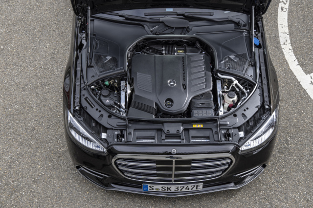 Beim Start der neuen S-Klasse BR 223 sind Reihensechszylinder als Ottomotor und Diesel in verschiedenen Leistungsstufen verfügbar, ein V8-Motor mit integriertem Starter-Generator (ISG) und 48-Volt-Bordnetz ergänzt bald danach die Auswahl. 2021 folgt ein Plug-in-Hybrid mit einer rein elektrischen Reichweite von rund 100 km.
