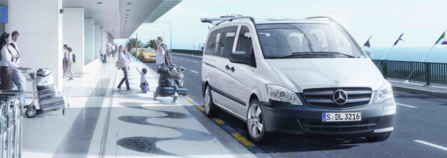 Ob als Hotelzubringer, Flughafenshuttle, Großraumtaxi - der Vito Shuttle kombiniert eine umfangreiche Komfort-Ausstattung mit großzügigen Platzverhältnissen und hohem Praxisnutzen. Damit eignet er sich vorzüglich für professionelle Personenbeförderung auf Kurz- und Langstrecken. Elegante Aluminiumräder, Stoßstangen und Stoßleisten in Wagenfarbe - der Vito Shuttle dokumentiert bereits auf den ersten Blick seinen gehobenen Komfortstandard. Der Fahrgastraum verwöhnt die Passagiere mit großzügigen Platzverhältnissen. Serienmäßig verfügt der Vito Shuttle im Fond über eine Zweiersitzbank in der ersten und eine Dreiersitzbank in der zweiten Reihe. Alle Plätze sind als Einzelsitze mit verstellbarer Rückenlehne ausgeführt; heruntergeklappt dienen die Lehnen als Tisch. Alternativ ist die zweite Reihe ebenfalls mit Dreierbestuhlung zu bekommen. Die Fondsitze sind mit Dreipunkt-Sicherheitsgurten, Isofix-Kindersitzbefestigungen und Komfort-Kopfstützen ausgestattet. Vollverkleidungen von Seitenwänden und Dach sowie ein Teppichboden schaffen im Fahrgastraum ein wohnliches und angenehmes Ambiente. Gepäck wird im geräumigen Stauraum hinter der zweiten Sitzreihe verstaut. Zur Vergrößerung des Gepäckabteils ist die zweite Reihe klapp- und wickelbar. Die Fahrgäste des Mercedes-Benz Vito Shuttle profitieren darüber hinaus vom neu entwickelten Komfortfahrwerk des Vito.