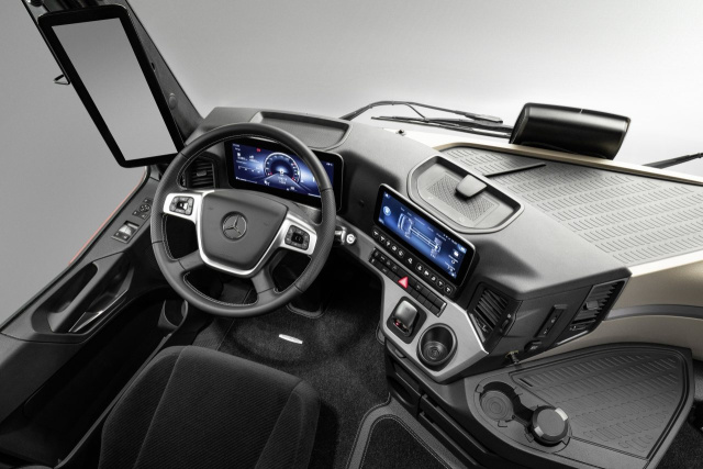 Im Zusammenhang mit den Assistenzsystemen darf die intelligente Tempomat- und Getriebesteuerung Predictive Powertrain Control (PPC) nicht unerwähnt bleiben. Dieser Assistent vermag Topografie, Straßenverlauf und Verkehrszeichen unter bestimmten Umständen zu berücksichtigen, um aufgrund der vorliegenden Daten/Infomationen unnötiges Bremsen, Beschleunigen und Schalten zu vermieden werden. Dank PPC soll die jüngste Actros-Generation auf Schnellstraßen und Autobahnen bis zu drei Prozent und im Überlandverkehr sogar bis zu fünf Prozent weniger Kraftstoff verbrauchen. Aktivitäten und Funktionen von Assistenzsystemen wie ABA 5 oder PPC bekommt der Kapitän der Landstraße im serienmäßigen Multimedia Cockpit mit seinen zwei Farbdisplays angezeigt.