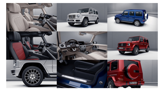 Im Exterieur-Design behält die neue G-Klasse ihren unverwechselbaren Charakter bei. Ihr komplett neuentwickelter Innenraum überzeugt unter anderem mit mehr Platz, mehr Stauraum und einem hochmodernen Infotainment-System. Intelligente Assistenzsysteme, neueste Fahrwerkstechnologie sowie starke und effiziente Motoren verfeinern die vielfach ausgezeichnete G-Klasse weiter. Ab Werk bereits hochwertig ausgestattet, bieten sich viele Optionen, um die neue G-Klasse ganz nach dem eigenen individuellen Geschmack zu gestalten. Elf neue Außenfarben von cavansitblau metallic bis hin zum designo citrinbraun magno treffen den richtigen Ton. Insgesamt stehen 24 Lackfarben zur Auswahl, davon neun Metallic- sowie 13 designo-Farben. Der Lack designo oliv metallic war zuletzt vor circa zwanzig Jahren für ein Mercedes-Benz Fahrzeug erhältlich und wurde extra für die neue G-Klasse wieder in die Farbpalette aufgenommen.