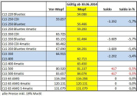 Erlaubt die Modelleinführung des CLS 220 Bluetec einen Einstieg in die Modellreihe zu einem Preis, der rund 10% unter dem des CLS 250 CDI liegt, so stehen auch die vergleichbaren Motorvarianten deutlich günstiger in der neuen Preisliste.