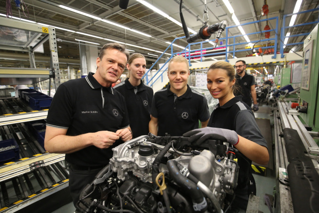 Valtteri goes Daimler! Der Nachfolger von Weltmeister Nico Rosberg im Mercedes-AMG Petronas F1-Team Valtteri Bottas ist zu einem Antrittsbesuch in die Daimler-Zentrale in Stuttgart gereist und wurde von seiner neuen Motorsport-Famile herzlich empfangen. Dabei war sich der F1-Star auch nicht zu schade, am direkt am Band mitzuschrauben!