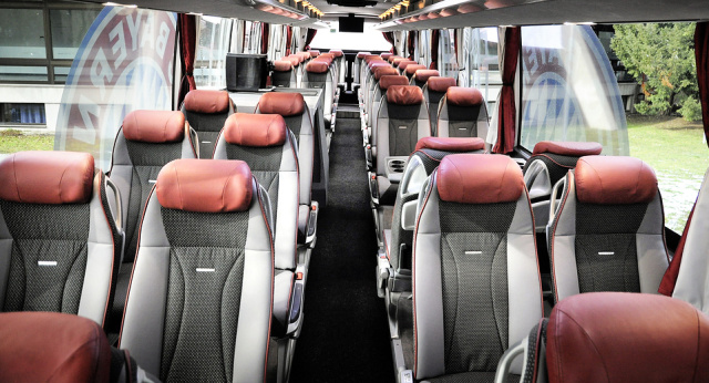 40 Reisesitze des Typs Setra Voyage plus mit individuell verstellbaren Komfort-Kopfstützen sorgen dafür, dass die Spieler auch auf längeren Fahrten zu den Spielstätten oder zu Trainingslagern äußerst bequem reisen können.