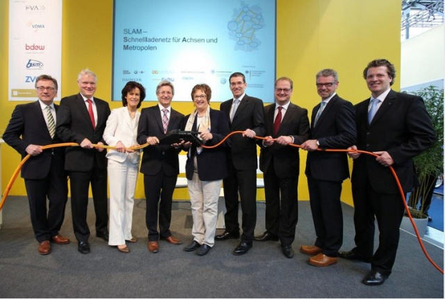 SLAM - Schnellladenetz für Achsen und Metropolen heißt das Großprojekt, mit dem die Automobilhersteller BMW, Daimler, Porsche und VW, der Deutsche Genossenschafts-Verlag eG, das Energieversorgungsunternehmen EnBW Vertrieb GmbH, das Institut für Arbeitswissenschaft und Technologiemanagement IAT der Universität Stuttgart und die RWTH Aachen University den Aufbau einer Schnellladeinfrastruktur innerhalb Deutschlands voranbringen wollen. Bis zum Jahr 2017 sollen im Rahmen dieses Programms bis zu 400 AC- und DC-Schnellladesäulen aufgestellt werden. Diese Stationen können von allen Fahrzeugen mit dem europäischen Stecker-Standard CCS (Combined Charging System) genutzt werden. Das Ziel der Bundesregierung von 1 Mio. Elektrofahrzeugen in 2020 wird durch SLAM flankiert. Durch dieses Forschungsprojekt werden die Voraussetzungen für ein flächendeckendes Schnellladenetz in Deutschland geschaffen, indem Geschäftsmodelle für den Betrieb von Schnellladestationen in Metropolen und entlang der Bundesautobahnen untersucht werden.