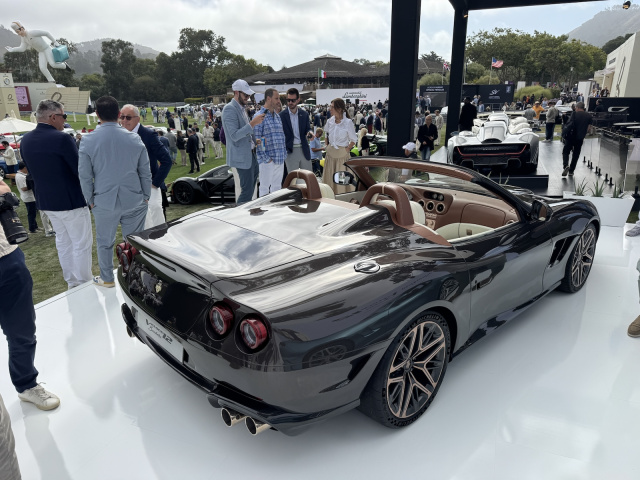 Wer genau hinschaut sieht, dass der Veloce 12 Barchetta auf dem zugegeben in die Jahre gekommenen Ferrari 550 Marenello basiert. Vor einem Jahr stellte der Kleinserienhersteller an gleicher Stelle das Coupé vor und produzierte in aufwendiger Handarbeit fünf Modelle. Jetzt wurde in The Quail die 503 PS starke Cabrioversion der Öffentlichkeit vorgestellt – ebenfalls mit dem charismatischen V12-Saugmotor.