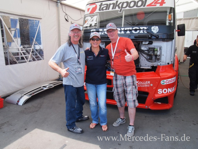 Das Wochenende beim Truck-Racing am Nürburgring war super, toll das auch mal hinter den Kulissen zu erleben und mit Ellen persönlich zu reden., berichtete uns heute Horst begeistert am Telefon. Echt klasse war auch die Live-Band, die abends im Tankpool-Zelt gespielt hat und wir hängengeblieben sind - und nicht zu vergessen, das Feuerwerk am Ring. Schade nur, dass Ellen mit ihrem Truck wegen einem Aufprall auf ihre Hinterachse einen Ausfall hatte. Dafür war das letzte Rennen am Ende der Zielgeraden echt spektakulär, nachdem einem Truck die Ölleitung geplatzt ist