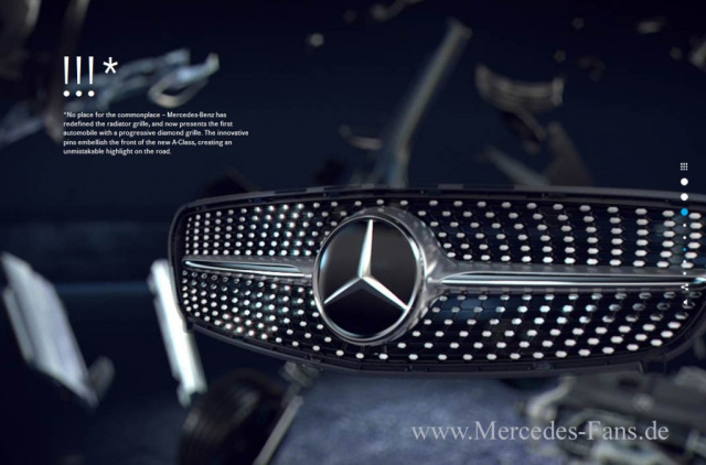 Zur Weltpremiere in Genf können die User von zu Hause aus nicht nur die Pressekonferenz per Live-Stream verfolgen, sondern interaktiv während des Messeauftritts vom 9. bis zum 14. März mittels Live-Kameras die neue A-Klasse aus unterschiedlichen Perspektiven betrachten und ihre ersten Eindrücke mit Freunden sowie den Messebesuchern teilen. Ihre Kommentare werden direkt auf einer LED-Wand auf dem Messestand und auf der Internet-Plattform gepostet. Bis zu fünf Kameras transportieren nonstop Bilder vom neuen Mercedes-Kompaktmodell live ins Internet. Über die sogenannte private mode-Funktion kann der User die Messebesucher vor Ort ausblenden und erhält so freie Sicht auf die A-Klasse.