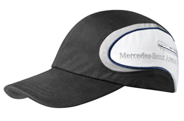 Arena: Die Farbe Weiß und das Mercedes-Benz Arena Logo kenn-zeichnen dagegen die Arena Fanartikel.