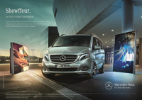 Die Printanzeigen setzen die V-Klasse in urbaner Umgebung dynamisch in Szene. Das Fahrzeug wird von Leuchtkästen illuminiert, die emotionale Bilder von charakteristischen Momenten aus den Lebenswelten der verschiedenen Zielgruppen zeigen zum Beispiel ein Vater mit Baby, ein Radsportler oder eine Konzertbühne. Ergänzt werden die sechs verschiedenen Bildmotive jeweils mit einer prägnanten, zielgruppenspezifischen Textbotschaft, wie Kein Vater muss fahren, was Väter so fahren. Entdecken Sie eine neue Form von Begeisterung., Die Suchmaschine für Höchstleistungen. Entdecken Sie eine neue Form von Spontanität. oder Showffeur. Entdecken Sie eine neue Form von Exklusivität. Die Textbotschaften thematisieren dabei einzelne Produktfeatures, die den Anspruch der jeweiligen Zielgruppen an eine Großraumlimousine unterstreichen vom sportlichen Fahrerlebnis über das variable Sitzkonzept bis hin zum hochwertigen Interieur-Design. Die Anzeigen werden weltweit als 2/1- und 1/1-Seiten in auflagenstarken Publikumszeitschriften, Nachrichtenmagazinen, Special-Interest-Medien und überregionalen Tageszeitungen geschaltet.
