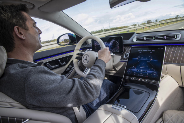 Voraussichtlich ab dem zweiten Halbjahr 2021 wird die S-Klasse mit dem neuen DRIVE PILOT (Sonderausstattung) bei hohem Verkehrsaufkommen oder Stausituationen auf geeigneten Autobahnabschnitten in Deutschland hochautomatisiert fahren können. Das entlastet den Fahrer und ermöglicht ihm Nebentätigkeiten wie im Internet surfen oder im In-Car-Office E-Mails bearbeiten und schenkt dem Fahrer dadurch Zeit.