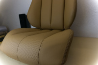 Daniel schöpft aus über 100 verschiedenen Ledersorten. „Was ich nicht habe, kann ich aber besorgen“, so der Lederspezialist, der im Übrigen auch in einer Gerberei hospitiert hat und somit über das Rüstzeug verfügt, Lederqualitäten zu beurteilen, wie zum Beispiel das Dattelleder, das für die Restauration der SL-Sitze (links) verwendet wurde.