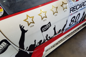 Am vergangenen Wochenende startet das in Walluf beheimatete Team Car Collection Motorsport gleich mit 3 Kunden-Fahrzeugen beim DMV Gran Turismo Touring Car Cup, kurz DMV-GTC, an. Des Weiteren setzte die Mannschaft einen eigenen Mercedes SLS AMG GT3 im „Fußball Fan Design Art Car“ für Teamchef Peter Schmidt und Kenneth Heyer ein. Kenneth Heyer, der Mercedes-Fans.de schon lange eng verbunden ist, sorgte darüber hinaus dafür, dass mit dem an prominenter Stelle prangenden Schriftzug "Mercedes-Fans.de" sich auch unsere Leser - die Fans der Marke mit dem Stern - wiederfinden. Außerdem wurde das Motorhome von Heyer, ein komplett umgebauter Reisebus von Mercedes-Benz, ebenfalls im Mercedes-Fans.de Design gestaltet.