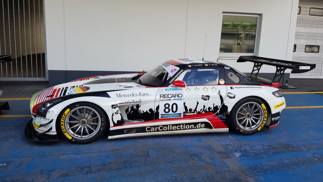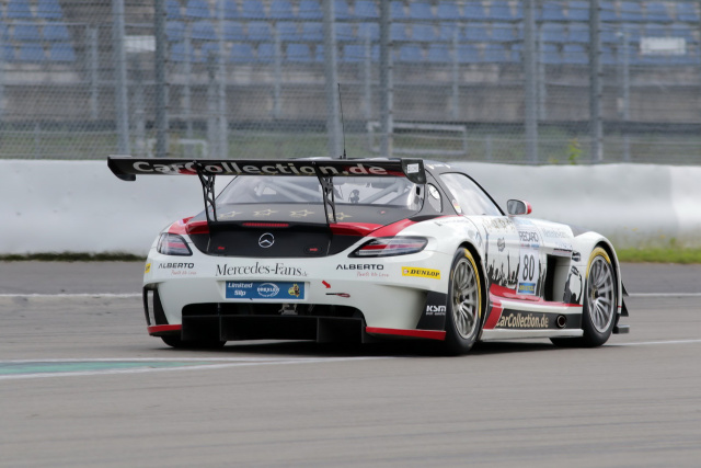 Josef Klüber (SLS AMG GT3 #82) und Peter Schmidt (SLS AMG GT3 #80) gingen in Lauf 1 ins Rennen. Peter Schmidt sicherte sich Rang 3 und holte dem Team somit den zweiten Podestplatz an diesem Tag. Josef Klüber schrammte mit Position 4 knapp am Podium vorbei. In Rennen zwei tauschten Schmidt und Klüber ihre Cockpits mit Kenneth Heyer und dem AMG-Markenbotschafter und ehemaligen Formel 1 Fahrer Karl Wendlinger. Heyer startete von Position 10, Wendlinger ging von der Pole Position ins Rennen. Der AMG-Markenbotschafter setzte sich direkt von Beginn an von seinen Verfolgern ab. Heyer fuhr einen perfekten Start. Von Platz 10 kämpfte er sich in der ersten Kurve direkt auf Rang 4 nach vorne. Dann die Enttäuschung für Wendlinger. Mit einer gebrochenen Radaufhängung musste er den Flügeltürer frühzeitig abstellen. Kenneth Heyer holte weiter auf. In der letzten Runde schob er sich an Position 2.