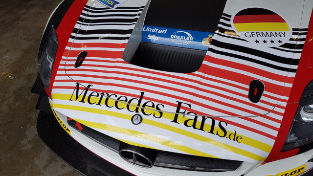 Kenneth Heyer startete mit einem ganz besonderen Rennwagen beim Nürburgring-Lauf der DMV-GTC! Sein Mercedes-Benz SLS AMG GT3 war ganz im Sinne der Fans gestaltet. Zum einen unterstützt man so unsere Mannschaft bei der Euro 2016, zum anderen ist es ein Gruß an euch, die Mercedes-Fans!