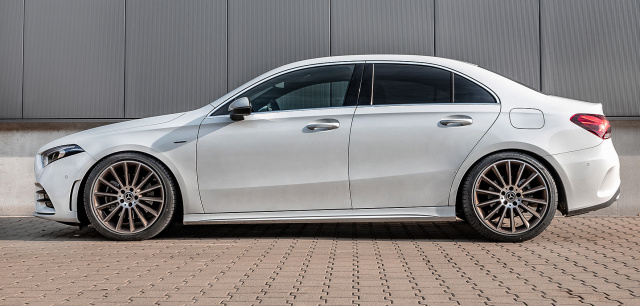Die exakt auf die Mercedes-Serien-Dämpfer abgestimmten Federn senken den Fahrzeugschwerpunkt um ca. 30 Millimeter an der Vorderachse respektive 20 Millimeter hinten ab und sorgen so für reduzierte Karosseriebewegungen und ein direkteres Einlenken. Hinzu kommt die überaus gefällige Optik, die neue Stand der A-Klasse Limo ist stimmig! Dennoch wird der langstreckentaugliche Fahrkomfort gewahrt und sorgt im besten Sinne für sportliche Fahreigenschaften mit Alltagsnutzwert.