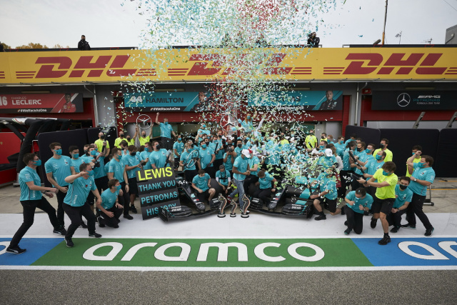 Das ist gerade überwältigend für mich. Ich sehe mir dieses Team an und denke an all die unbesungenen Helden in Brackley und Brixworth. Sie hören niemals auf zu arbeiten, geben nie auf, pushen immer weiter, legen die Messlatte immer höher und sorgen für Innovationen. Herzlichen Glückwunsch an das Team zu diesem extrem verdienten Gewinn der Konstrukteurs-Weltmeisterschaft. Ich bin allen auf ewig dankbar und wahnsinnig stolz darauf, ein Teil davon sein zu dürfen. Es ist unglaublich, wie wir jedes Jahr wieder angreifen und solch fantastische Leistungen erbringen. Siebenmal Weltmeister - davon werde ich eines Tages meinen Enkelkindern erzählen können. Das hat noch kein Team bislang erreicht und ich fühle mich geehrt, dass ich ein Teil der Truppe sein darf, die diesen Rekord gebrochen hat. Herzlichen Dank an die gesamte Mercedes-Familie, an PETRONAS und alle unsere Partner, denn ohne sie wäre das alles nicht möglich gewesen. Das Rennen selbst war anstrengend, besonders wegen der hohen Geschwindigkeiten, die wir auf dieser Strecke erzielen. Ich hatte einen schwierigen Start, aber ich konnte meinen Stint ausdehnen und mich an die Spitze zurückkämpfen. Es ist ein fantastisches Gefühl, den Titel heute mit einem Doppelsieg in Imola geholt zu haben.