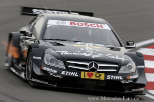 Mercedes AMG konnte in Zandvoort zwar nicht das Rennen gewinnen, und doch darf man nach dem siebten Lauf der DTM Saison 2012 eine positive Bilanz ziehen: Mercedes-Benz führt nämlich in allen drei Gesamtwertungen für Fahrer, Teams und Hersteller. Jamie Green (Mercedes AMG C-Coupé) beendete den siebten Saisonlauf der DTM in Zandvoort auf Platz vier und verbesserte sich damit in der Meisterschaftstabelle auf den zweiten Platz. Das Rennen gewann Edoardo Mortara (Audi). Tabellenführer Gary Paffett (THOMAS SABO Mercedes AMG C-Coupé) belegte nach einem schwierigen Rennen Position sieben. Von Rang acht gestartet, lag Paffett auf Platz vier, als er zu Beginn der 27. Runde von Martin Tomczyk (BMW) umgedreht wurde und bis auf Rang elf zurückfiel. In den verbleibenden 16 Runden verbesserte sich der Tabellenführer um vier Positionen bis auf Platz sieben.