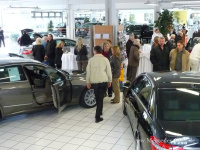 Damit könnte er recht haben, denn auch in den anderen von uns besuchten Autohäusern herrschte bisweilen ebenfalls drangvolle Enge. Und was meint das Publikum zum neuen Design? Sehr gut, das wird nach zwei BMW wieder ein Mercedes! Aber bitte kein Foto von mir, ich muss mit meinem Fünfer nächste Woche noch zur Inspektion!, so ein potenzieller Rückkehrer. Den Gefallen tun wir ihm gern!