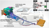 verringert werden sollte. Der erste Motor ist nahe am internen Verbrennungsmotors angebracht und dient sowohl als Motor wie auch als Generator und unterstützt den Antrieb mit über 80 PS bzw. lädt die Fahrzeugbatterie auf. Der zweite Motor, der sich an der Antriebsseite