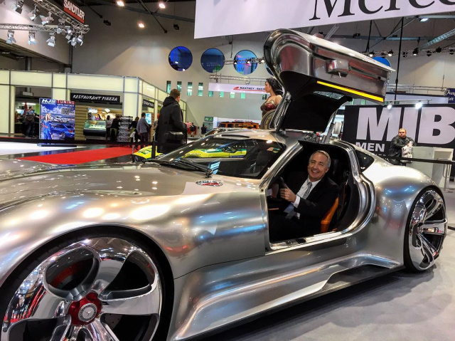 Messe-Chef Oliver Kuhrt gefiel es im futuristischen Silberpfeil offensichtlich recht gut!