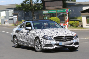 Unsere neuesten Erlkönig Bilder zeigen einen Mercedes Benz C-Coupe Prototypen mit ungetarnter seitlicher Fensterlinie. Bei allen unterschiedlichen Tarnstufen zuvor war die Seitenlinie immer abgeklebt. Jetzt ist die Karosserie zwar noch etwas stärker getarnt als auf den letzten Fotos, aber dafür erkennt man sehr gut das hintere kleine Fenster. Das neue Mercedes Benz C-Coupe wird im September auf der IAA dem Publikum präsentiert.