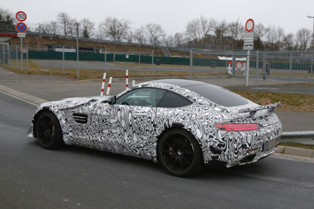 Der Mercedes-Fans.de Erlkönigjäger machte die Bilder von der Hardcore-Version des Mercedes-AMG GT bei Tests am Nürburgring. Der Prototyp ist komplett voll getarnt und zeigt einige sportlichen Änderungen zum aktuellen AMG GT S. Die Front besitzt eine extra flache Lippe. Darüber hinaus sind breitere Radkästen für eine weitere Spur, einige zusätzliche kleine Spoiler entlang der Karosserie und ein größere Heckflügel zu erkennen.