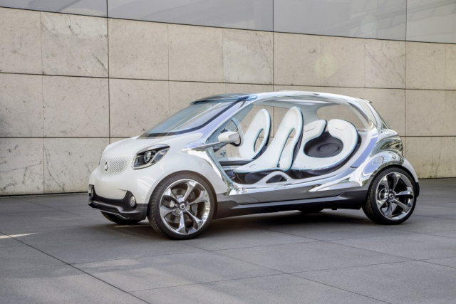 Nach der Premiere auf der IAA in Frankfurt kommt das neue Concept Car aus dem Hause smart nach Essen. Der smart fourjoy ist der Vorbote einer neuen Generation von Smart. Zum smart-Markenerlebnis passen auch mehr als zwei Sitzplätze. Keine Türen, keine Heckscheibe, offenes Dach die Studie verzichtet auf unnötigen Ballast. Zugleich haben Betrachter dadurch freien Blick auf den futuristisch anmutenden Innenraum mit der auffälligen Rücksitzbank im Stil eines Lounge-Möbels. Mit seinen kompakten Maßen und einem Wendekreis von 9,1 Metern setzt der smart fourjoy auf die markentypische Wendigkeit und kann seine Stärken besonders in den Metropolen der Welt ausspielen. Und dank des aktuellen electric drive mit 75 PS/55-kW-Permanentmagnetmotor bewegt sich der smart fourjoy lokal emissionsfrei.