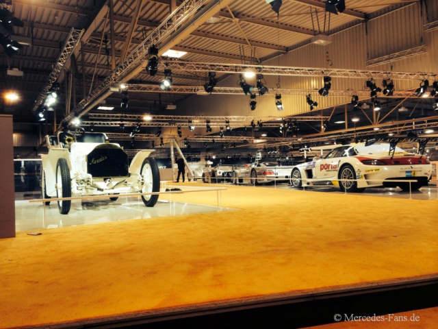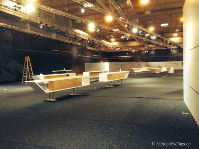 Wir haben schon mal einen Blick gewagt und zeigen Ihnen hier die ersten Bilder des fast schon fertigen Messestands von Mercedes-Benz Classic.