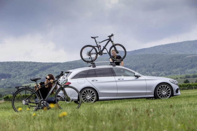 Mit Original-Zubehör lässt sich der Freizeitwert des C-Klasse T-Modells noch weiter steigern: So ist beispielsweise ein Heckfahrradträger für die Anhängevorrichtung erhältlich, mit dem sich zwei oder drei Räder transportieren lassen. Praktisch: Dank cleverer Mechanik kann der Kofferraum weiterhin geöffnet werden, und zur Platz sparenden Lagerung lässt sich der Träger bequem zusammenklappen. Wer den Transport auf dem Fahrzeugdach bevorzugt, kann den Relingträger Easy-Fix mit Ski- und Snowboardhalter sowie dem Fahrradträger New Alustyle kombinieren.