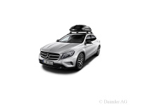 Ein weiteres Highlight im Original-Zubehör-Angebot für die GLA-Klasse ist der neue Relingträger Aerostyle. Diese multifunktionale Basis für alle Mercedes-Benz Transport- und Freizeitlösungen wie Dachboxen, Fahrrad- oder Ski- und Snowboardträger lässt sich ohne Werkzeug schnell an der Dachreling befestigen. Eine Dachreling aus Aluminium besitzt der GLA serienmäßig in den Lines Style, Urban und AMG sowie in Kombination mit dem Night-Paket.