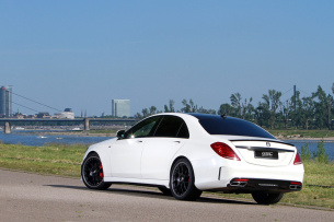 German Special Customs mit Sitz in Chemnitz geht der S-Klasse ans Blech und schneidert dem W222 ein markantes Aerodynamikpaket auf den Leib. Augenfälligste Modifikationen der German Special Customs-S-Klasse sind sicherlich die wuchtigen Schürzen an Bug und Heck: Die GSC-Frontspoilerstoßstange mit integrierten LED-Tagfahrlichtleisten scheint den Fahrtwind mit ihren riesigen Kühlluftöffnungen geradezu gierig einsaugen zu wollen. Ihr Pendant am Heck umrahmt die vom AMG S65 lang stammenden Trapez-Endrohre der hauseigenen Sportabgasanlage. Harmonische Verbindungsglieder zwischen den neuen Stoßstangen bilden vergleichsweise dezente Seitenschweller, die darüber hinaus für eine optische Tieferlegung sorgen.
