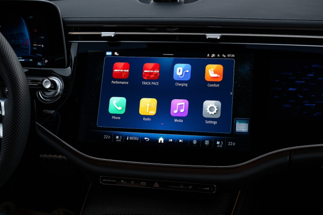 Ganz anders ist das bei langsamer Fahrt, denn der mindestens 105.036 Euro teure Mercedes AMG E53 Hybrid kann nicht nur gewaltig anschieben, sondern auch rein elektrisch cruisen. Zwar lassen sich von dem 28,6 kWh großen Akkupaket unter dem Boden des ebenen Laderaums nur schmale 21,2 kWh nutzen, doch diese reichen aus, um den stattlichen Powerkombi auf einer Strecke von über 90 Kilometern rein elektrisch surren zu lassen. Diese Strecke dürfte für die meisten Nutzer im Alltag locker ausreichen, um die Strecken im urbanen Umfeld geräuschlos und günstig ohne Einsatz des Verbrenners zurückzulegen. Das klappt immerhin bis zu einer Geschwindigkeit von 140 km/h und ist nicht nur dann ideal, wenn zu Hause unter Umständen sogar selbst produzierter Strom vertankt werden kann. Gewohnt wenig aussagekräftig ist dabei der hybride Normverbrauch, der mit 0,9 bis 1,1 Litern Super auf 100 Kilometer angegeben, wird.
