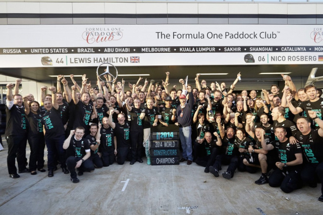 Seit dem Großen Preis von Russland steht fest: MERCEDES AMG PETRONAS hat vorzeitig die Konstrukteurs-Weltmeisterschaft in der Formel 1 gewonnen. Wie schon bei der Fußball-WM gilt also: Weltmeister fahren Mercedes. Das offizielle T-Shirt, in dem das Formel-1-Team nach dem Titelgewinn in Sotschi feierte, ist ab sofort online unter http://shop.mercedes-benz.com oder bei den Mercedes-Benz Vertriebspartnern erhältlich.