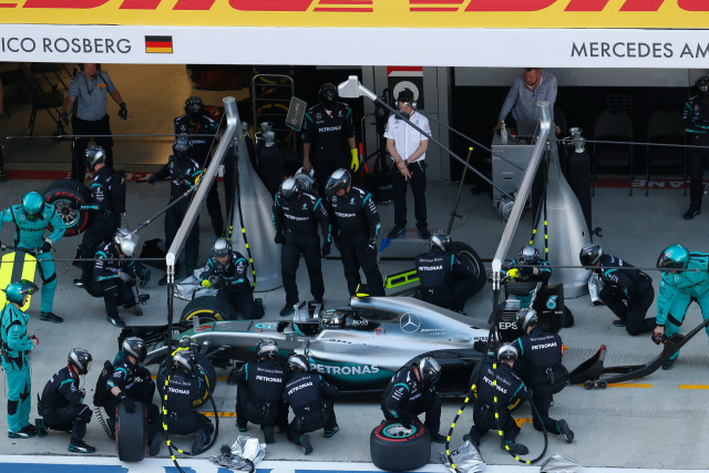 Ganz und gar nicht gelassen verfolgte man am Kommandostand das Rennen. Schon früh zeichneten sich Probleme an beiden Fahrzeugen ab, die nach Aussage der Techniker eigentlich zum Doppel-Ausfall hätten führen müssen. Mit viel Glück und Schonung der Fahrzeuge durch die Piloten gelang es aber, die Situation zu stabilisieren. Die sich häufenden Technik-Probleme treiben den Verantwortlichen Sorgenfalten auf die Stirn. Diese Saison ist ungeachtet der Erfolge noch lange kein Selbstläufer. Bislang hatte man das Glück, dass die Tecnik nicht in rennentscheidenden Situationen aufgab, sondern die Probleme immer irgendwie noch lösbar waren. Auch wenn man wie am Samstag abend noch mittels Privat-Jet Teile aus der Fabrik nach Russland schaffen musste, um Lewis einen Start zu ermöglichen. Für die Mitbewerber allerdings ist diese Unzuverlässigkeit der Technik wohl der einzige Lichtblick am Horizont.