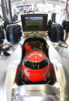 Damit nicht genug: in Runde 28 mußte Michael Schumacher nach einer Kollision mit Massa seinen Mercedes GP-Rennwagen abstellen. Die Gänge ließen sich danach nicht mehr einlegen. Massa hatte vorher schon einmal nach einer spektakulären Pirouette im Grün gestanden. Hamilton hatte derweil Vettel kassiert und machte richtig Dampf. So nach und nach wechselten die Teams auf weiche Slicks.