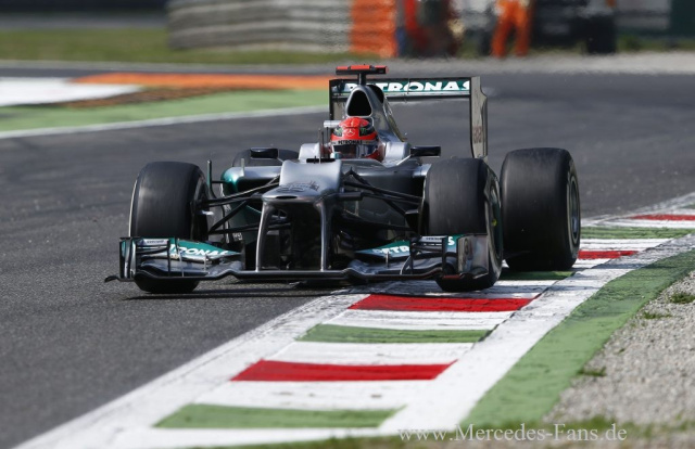 Michael Schumacher beendete den Großen Preis von Italien als Sechster u8dn war damit der beste Deutsche in diesme Rennen, dass Hamilton im McLaren-Mercedes gewann. Nico Rosberg belegte beim 13. Rennen dieser Saison den siebten Platz. Die beiden MERCEDES AMG PETRONAS Fahrer erzielten beim letzten Rennen dieser Saison auf europäischem Boden 14 Punkte für die Konstrukteursweltmeisterschaft.