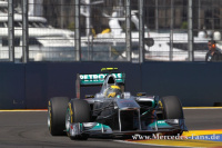 Bei Schumi lief es wieder einmal nicht rund: In Runde 16 mußte der siebenmalige Weltmeister an die Box, um einen Frontflügel wechseln zu lassen, den er sich in einer Kollision mit Vitali Petrov abgefahren hatte. Schumi fällt zurück auf Platz 16!